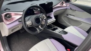 Hệ thống cửa gió điều hòa của xe được thiết kế dạng tuabin máy bay độc đáo, cùng tay nắm mở cửa phá cách, tạo điểm nhấn riêng biệt cho BYD Dolphin. Ngoài ra, xe còn tích hợp nhiều tiện ích như điều hòa tự động với hệ thống lọc bụi mịn PM2.5, hệ thống âm thanh 6 loa chất lượng cao, lẫy chuyển số thể thao, khởi động bằng nút bấm, 4 cổng USB cho cả hai hàng ghế, cổng sạc 12V, chìa khóa thông minh và khóa cửa dạng thẻ từ.